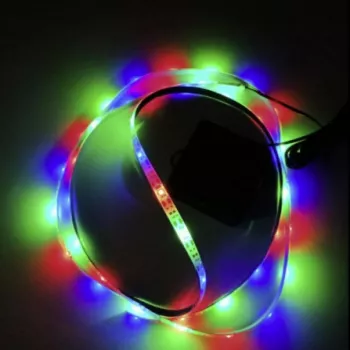 Zip-tie the LED strip around the perimeter of your hoop rim.